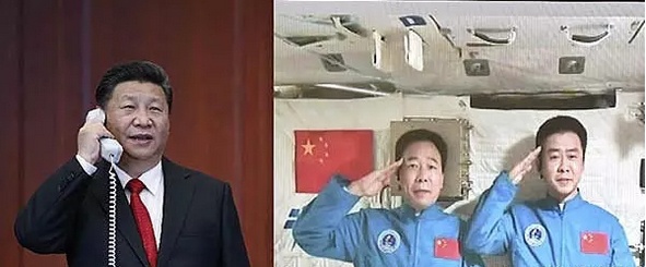 2016年11月9日16時(shí)25分,習(xí)近平與工作在天空二號(hào)空間站的航天員景海鵬、陳冬連線通話。