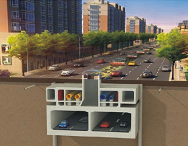 地下城市管道綜合走廊。即在城市地下建造一個隧道空間,將電力、通訊,燃?xì)?、供熱、給排水等各種工程管線集于一體,設(shè)有專門的檢修口、吊裝口和監(jiān)測系統(tǒng),實(shí)施統(tǒng)一規(guī)劃、統(tǒng)一設(shè)計、統(tǒng)一建設(shè)和管理,是保障城市運(yùn)行的重要基礎(chǔ)設(shè)施和“生命線”。